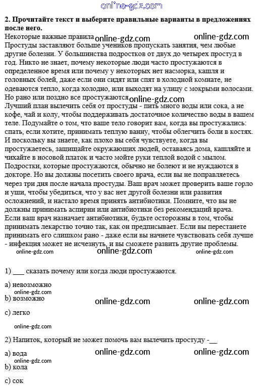 Готовые домашние задания по Английскому языку за 8 класс Рабочая тетрадь Афанасьева, Михеева Новый курс 2017 - Test 5 Unit 5. Keeping Fit 2