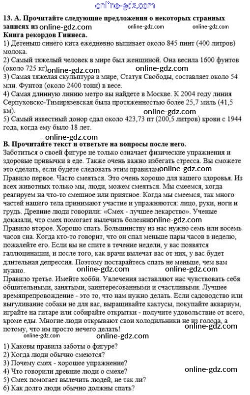Готовые домашние задания по Английскому языку за 8 класс Рабочая тетрадь Афанасьева, Михеева Новый курс 2017 - Unit 5. Keeping Fit Тетрадь №2 13