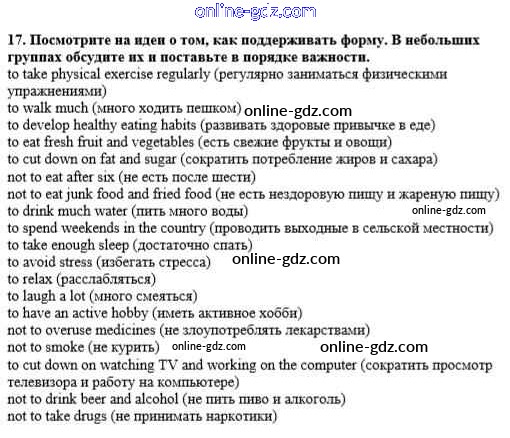 Готовые домашние задания по Английскому языку за 8 класс Рабочая тетрадь Афанасьева, Михеева Новый курс 2017 - Unit 5. Keeping Fit Тетрадь №2 17