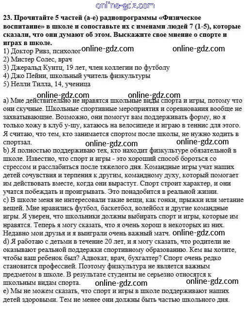 Готовые домашние задания по Английскому языку за 8 класс Рабочая тетрадь Афанасьева, Михеева Новый курс 2017 - Unit 5. Keeping Fit Тетрадь №2 23