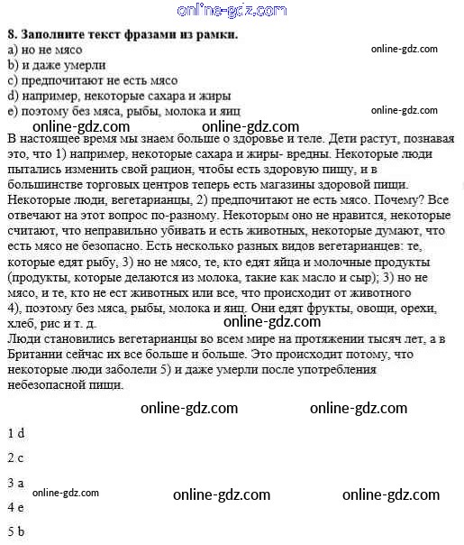Готовые домашние задания по Английскому языку за 8 класс Рабочая тетрадь Афанасьева, Михеева Новый курс 2017 - Unit 5. Keeping Fit Тетрадь №2 8