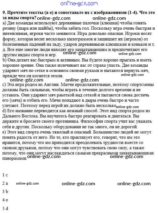 Готовые домашние задания по Английскому языку за 8 класс Рабочая тетрадь Афанасьева, Михеева Новый курс 2017 - Unit 5. Keeping Fit Тетрадь №2 9