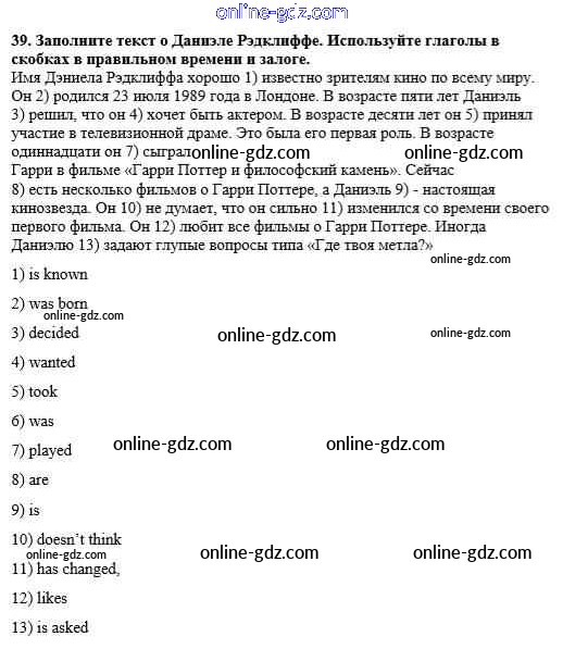 Готовые домашние задания по Английскому языку за 8 класс Рабочая тетрадь Афанасьева, Михеева Новый курс 2017 - Unit 6. Our Favourite Pastimes Тетрадь №2 39