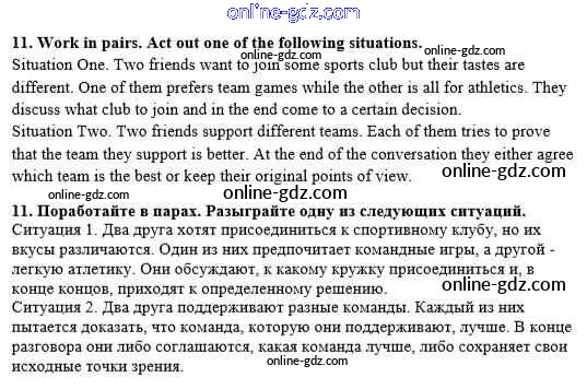 Готовые домашние задания по Английскому языку за 8 класс Рабочая тетрадь Афанасьева, Михеева Rainbow 2016 - Unit 1. Sport and outdoor activities 11