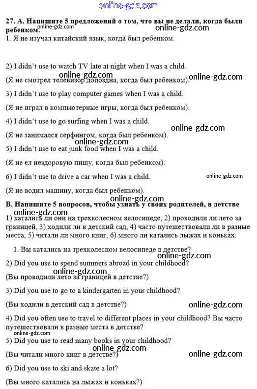 Готовые домашние задания по Английскому языку за 8 класс Рабочая тетрадь Афанасьева, Михеева Rainbow 2016 - Unit 1. Sport and outdoor activities 27