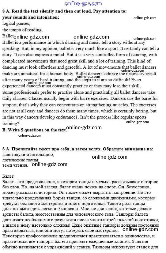 Готовые домашние задания по Английскому языку за 8 класс Рабочая тетрадь Афанасьева, Михеева Rainbow 2016 - Unit 1. Sport and outdoor activities 8