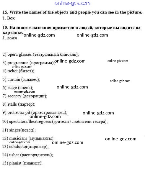 Готовые домашние задания по Английскому языку за 8 класс Рабочая тетрадь Афанасьева, Михеева Rainbow 2016 - Unit 2. Performing arts: theatre 15