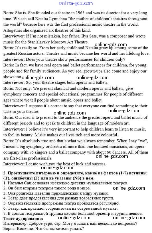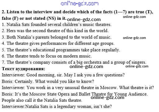 Готовые домашние задания по Английскому языку за 8 класс Рабочая тетрадь Афанасьева, Михеева Rainbow 2016 - Unit 2. Performing arts: theatre 2
