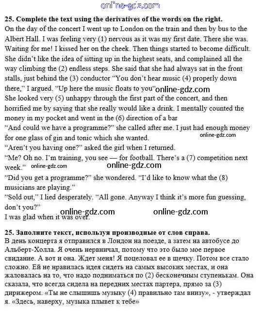 Готовые домашние задания по Английскому языку за 8 класс Рабочая тетрадь Афанасьева, Михеева Rainbow 2016 - Unit 2. Performing arts: theatre 25