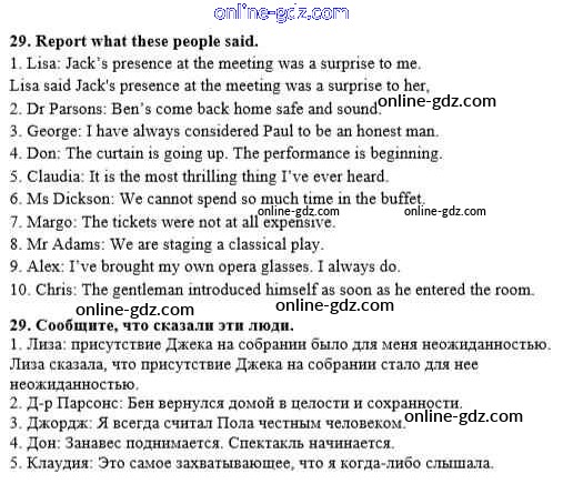 Готовые домашние задания по Английскому языку за 8 класс Рабочая тетрадь Афанасьева, Михеева Rainbow 2016 - Unit 2. Performing arts: theatre 29