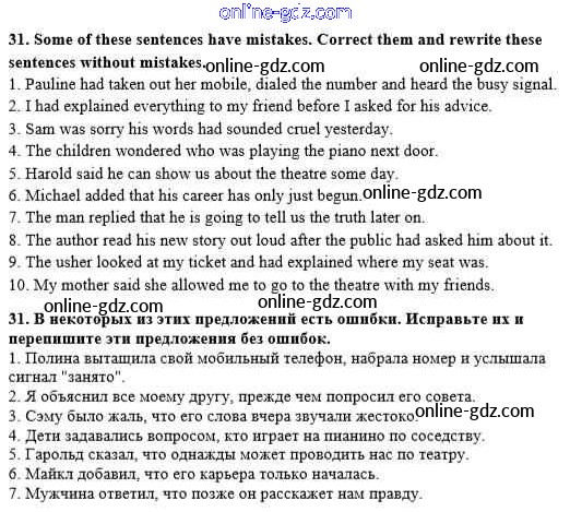 Готовые домашние задания по Английскому языку за 8 класс Рабочая тетрадь Афанасьева, Михеева Rainbow 2016 - Unit 2. Performing arts: theatre 31