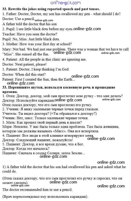 Готовые домашние задания по Английскому языку за 8 класс Рабочая тетрадь Афанасьева, Михеева Rainbow 2016 - Unit 2. Performing arts: theatre 33