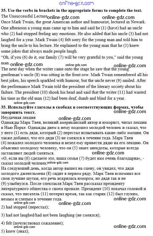 Готовые домашние задания по Английскому языку за 8 класс Рабочая тетрадь Афанасьева, Михеева Rainbow 2016 - Unit 2. Performing arts: theatre 35