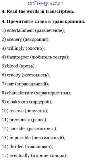 Готовые домашние задания по Английскому языку за 8 класс Рабочая тетрадь Афанасьева, Михеева Rainbow 2016 - Unit 2. Performing arts: theatre 4