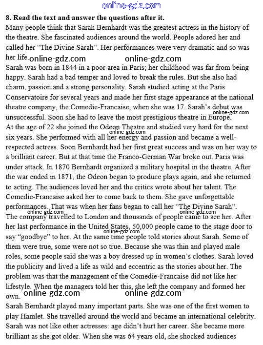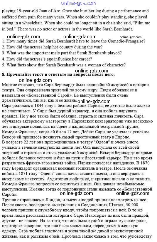 Готовые домашние задания по Английскому языку за 8 класс Рабочая тетрадь Афанасьева, Михеева Rainbow 2016 - Unit 2. Performing arts: theatre 8