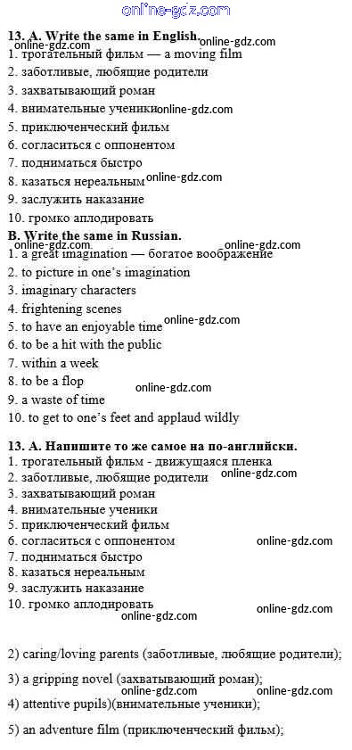 Готовые домашние задания по Английскому языку за 8 класс Рабочая тетрадь Афанасьева, Михеева Rainbow 2016 - Unit 3. Performing arts: cinema 13