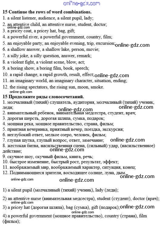 Готовые домашние задания по Английскому языку за 8 класс Рабочая тетрадь Афанасьева, Михеева Rainbow 2016 - Unit 3. Performing arts: cinema 15