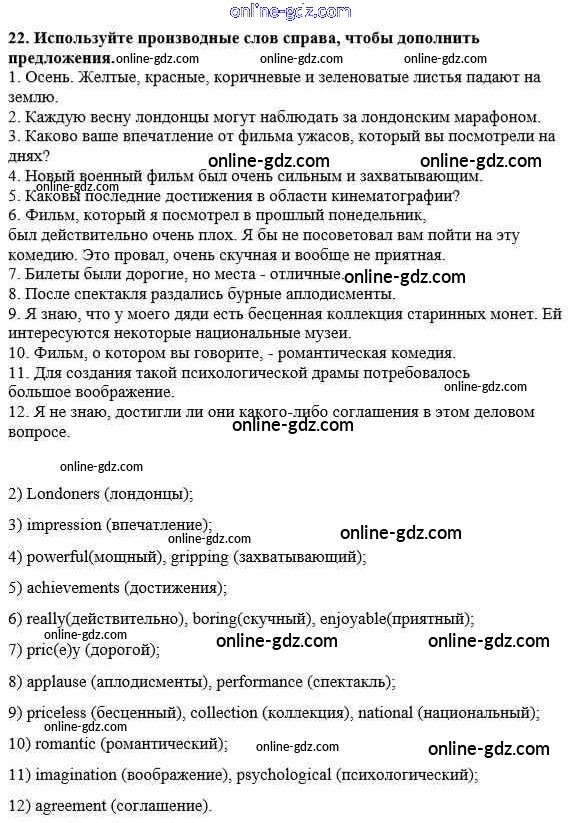 Готовые домашние задания по Английскому языку за 8 класс Рабочая тетрадь Афанасьева, Михеева Rainbow 2016 - Unit 3. Performing arts: cinema 22
