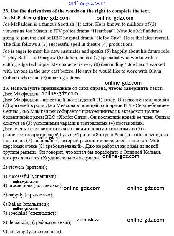 Готовые домашние задания по Английскому языку за 8 класс Рабочая тетрадь Афанасьева, Михеева Rainbow 2016 - Unit 3. Performing arts: cinema 23