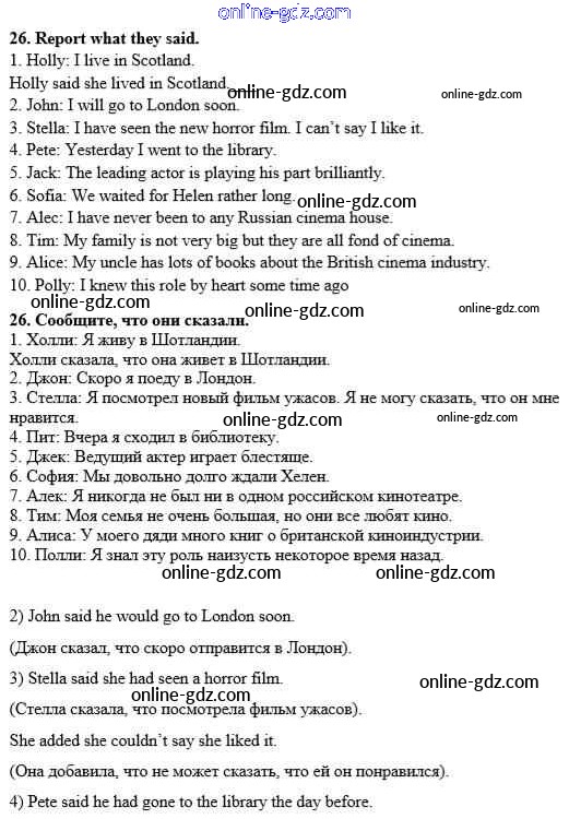 Готовые домашние задания по Английскому языку за 8 класс Рабочая тетрадь Афанасьева, Михеева Rainbow 2016 - Unit 3. Performing arts: cinema 26