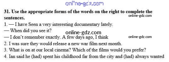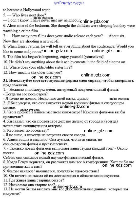 Готовые домашние задания по Английскому языку за 8 класс Рабочая тетрадь Афанасьева, Михеева Rainbow 2016 - Unit 3. Performing arts: cinema 31