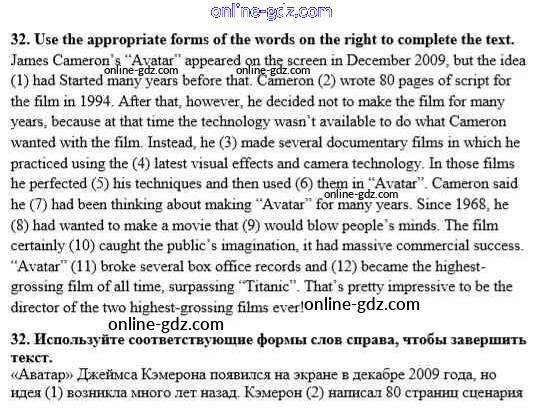 Готовые домашние задания по Английскому языку за 8 класс Рабочая тетрадь Афанасьева, Михеева Rainbow 2016 - Unit 3. Performing arts: cinema 32