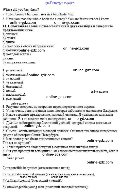 Готовые домашние задания по Английскому языку за 8 класс Рабочая тетрадь Афанасьева, Михеева Rainbow 2016 - Unit 4. The whole world knows them 14