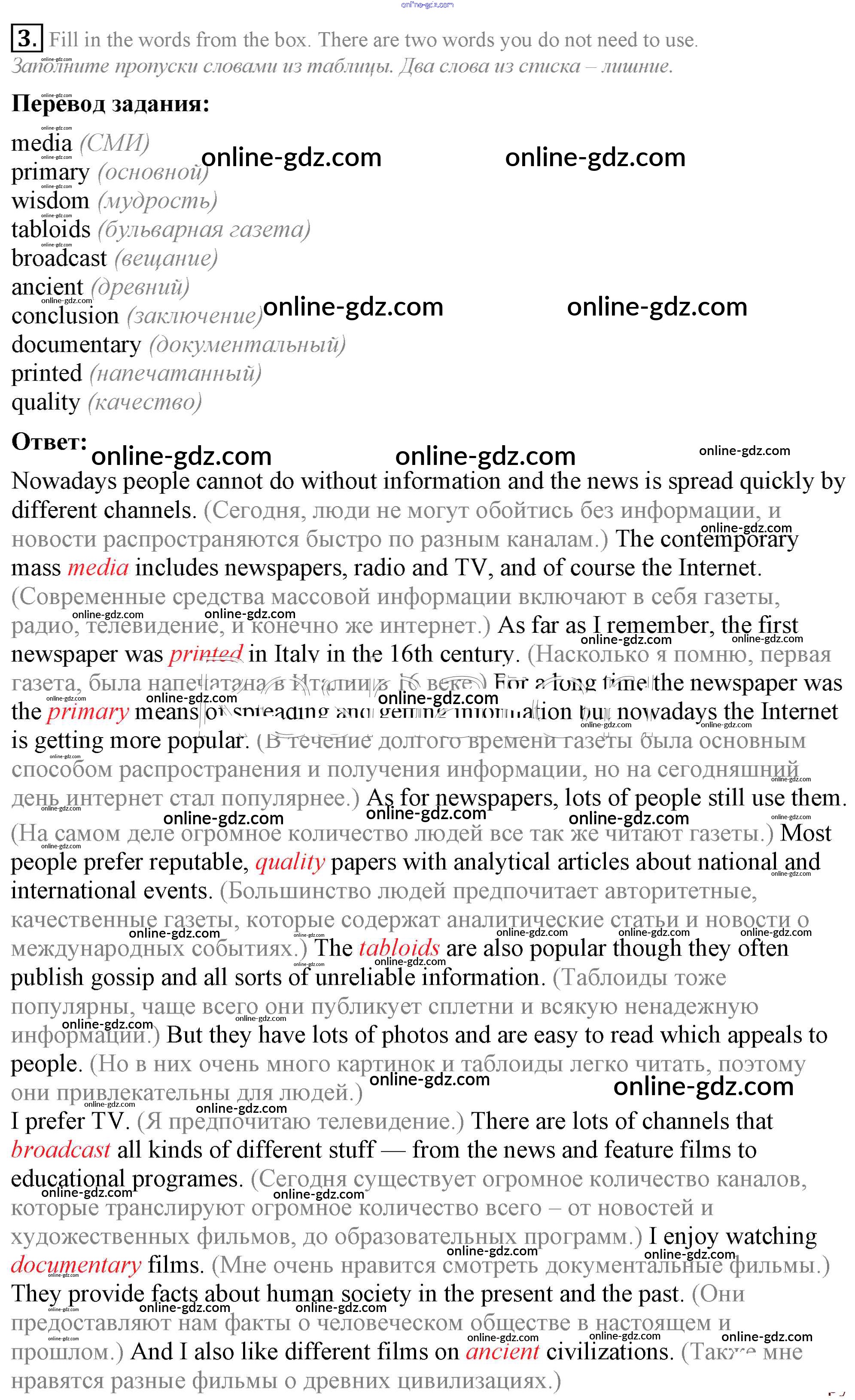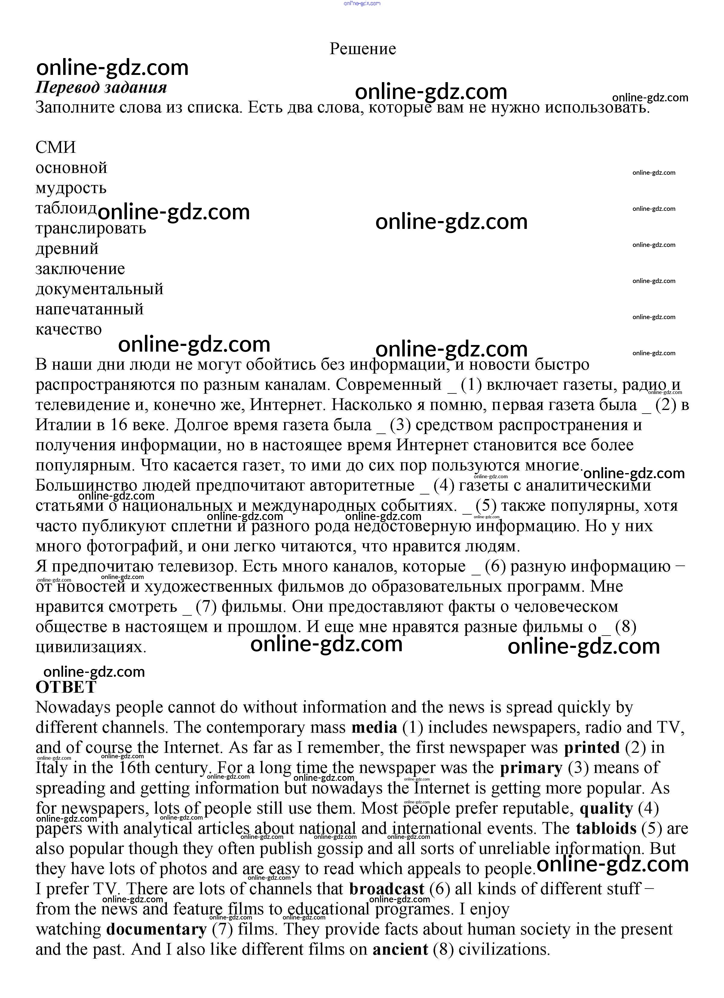 Готовые домашние задания по Английскому языку за 8 класс Рабочая тетрадь Биболетова, Бабушис Enjoy English 2015 - Test Unit 3 3