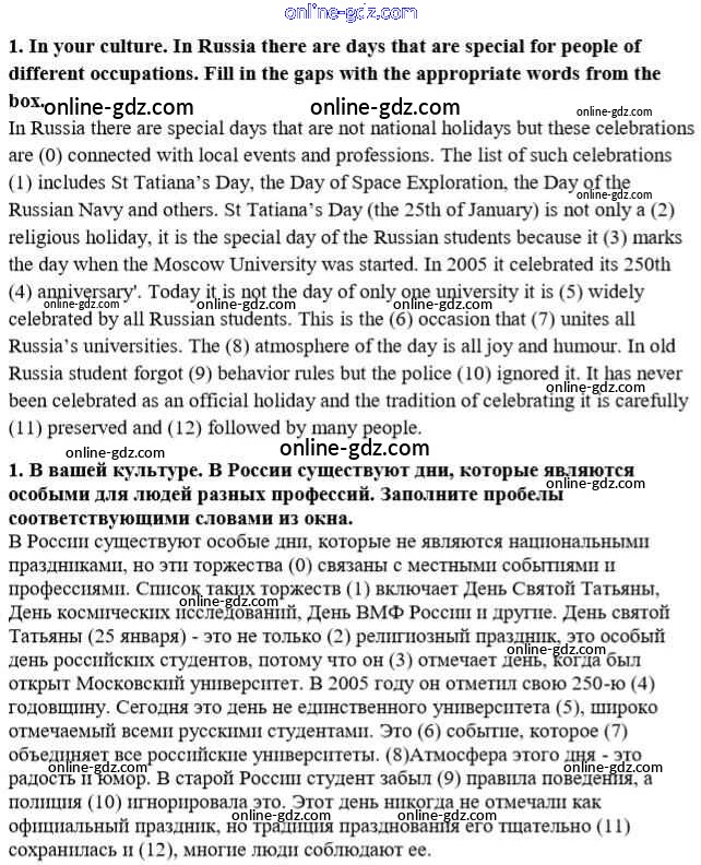 Готовые домашние задания по Английскому языку за 8 класс Рабочая тетрадь Кузовлев, Перегудова 2014 - Consolidation Unit 2. Is your country a land of traditions? 1