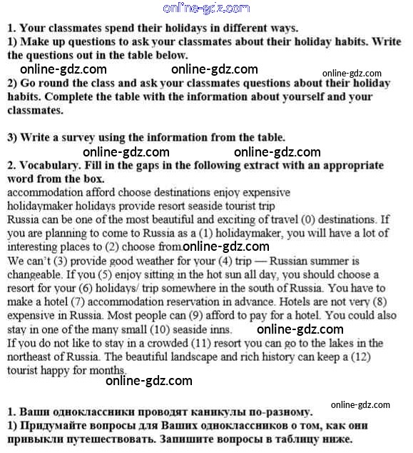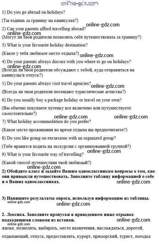 Готовые домашние задания по Английскому языку за 8 класс Рабочая тетрадь Кузовлев, Перегудова 2014 - Unit 3. Do you like travelling? урок 1