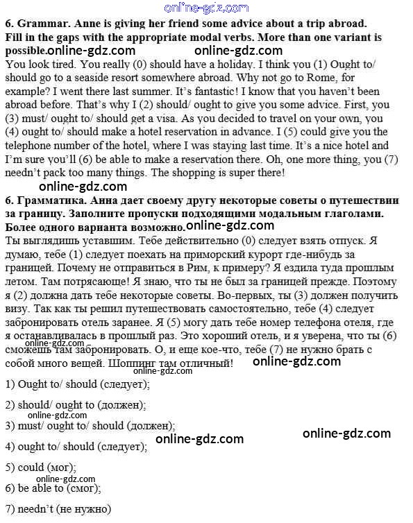 Готовые домашние задания по Английскому языку за 8 класс Рабочая тетрадь Кузовлев, Перегудова 2014 - Consolidation Unit 3. Do you like travelling? 6