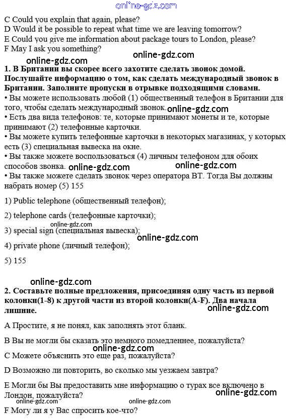 Готовые домашние задания по Английскому языку за 8 класс Рабочая тетрадь Кузовлев, Перегудова 2014 - Unit 3. Do you like travelling? урок 7
