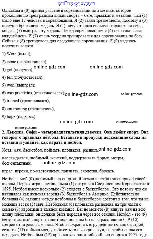 Готовые домашние задания по Английскому языку за 8 класс Рабочая тетрадь Кузовлев, Перегудова 2014 - Unit 4. Are you fond of sport? урок 2
