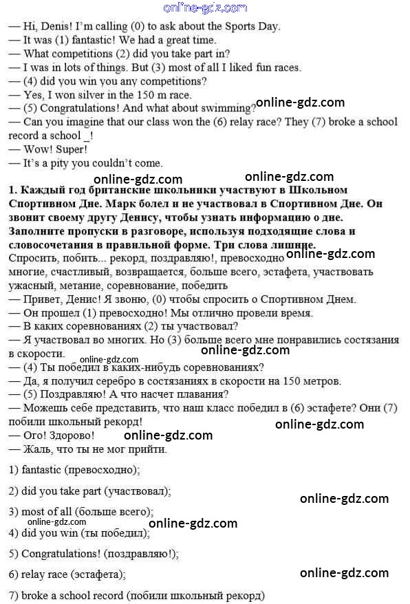 Готовые домашние задания по Английскому языку за 8 класс Рабочая тетрадь Кузовлев, Перегудова 2014 - Unit 4. Are you fond of sport? урок 7