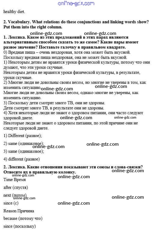 Готовые домашние задания по Английскому языку за 8 класс Рабочая тетрадь Кузовлев, Перегудова 2014 - Unit 5. A healthy living guide урок 8-9