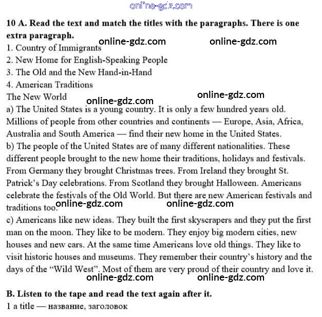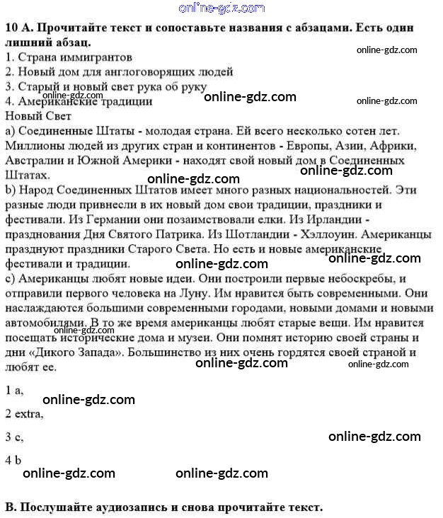 Готовые домашние задания по Английскому языку за 8 класс Учебник Афанасьева, Михеева Новый курс 2017 - Step 1 Unit 1. Visiting the USA 10