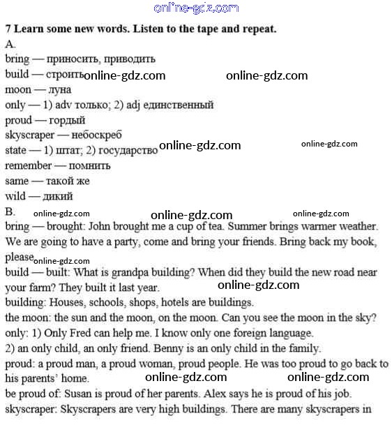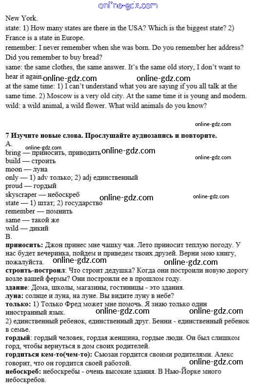 Готовые домашние задания по Английскому языку за 8 класс Учебник Афанасьева, Михеева Новый курс 2017 - Step 1 Unit 1. Visiting the USA 7