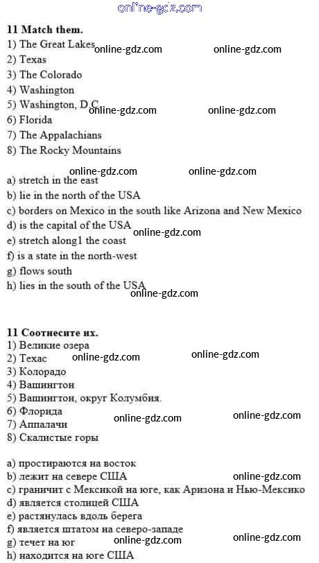 Готовые домашние задания по Английскому языку за 8 класс Учебник Афанасьева, Михеева Новый курс 2017 - Step 2 Unit 1. Visiting the USA 11