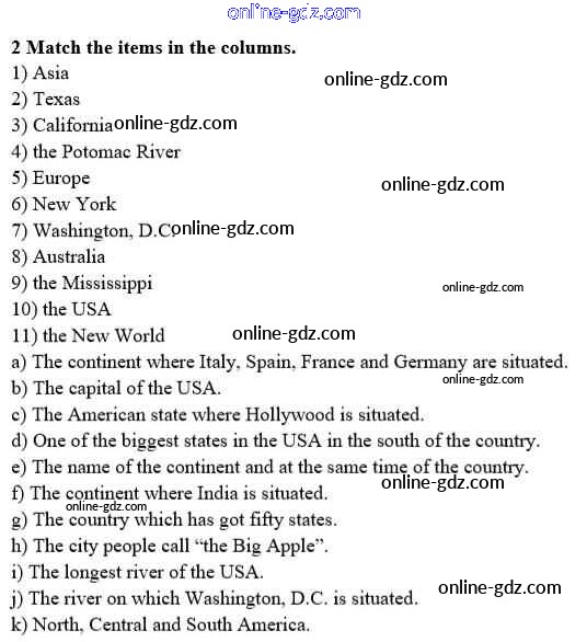 Готовые домашние задания по Английскому языку за 8 класс Учебник Афанасьева, Михеева Новый курс 2017 - Step 2 Unit 1. Visiting the USA 2