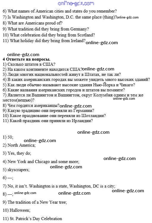 Готовые домашние задания по Английскому языку за 8 класс Учебник Афанасьева, Михеева Новый курс 2017 - Step 2 Unit 1. Visiting the USA 4