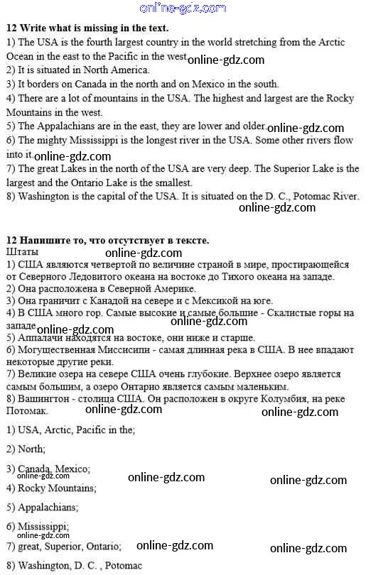 Готовые домашние задания по Английскому языку за 8 класс Учебник Афанасьева, Михеева Новый курс 2017 - Step 3 Unit 1. Visiting the USA 12