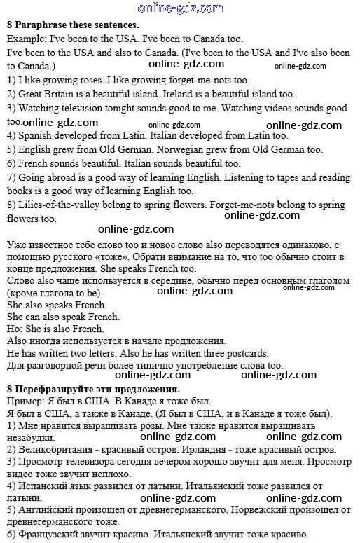 Готовые домашние задания по Английскому языку за 8 класс Учебник Афанасьева, Михеева Новый курс 2017 - Step 2 Unit 2. English - a Global Language 8