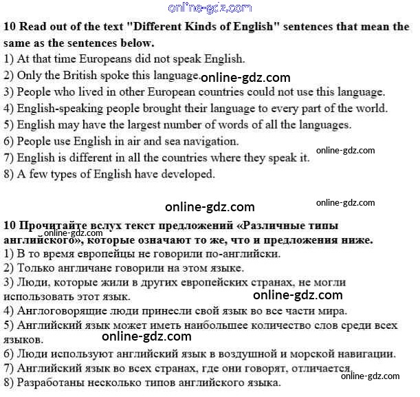 Готовые домашние задания по Английскому языку за 8 класс Учебник Афанасьева, Михеева Новый курс 2017 - Step 3 Unit 2. English - a Global Language 10