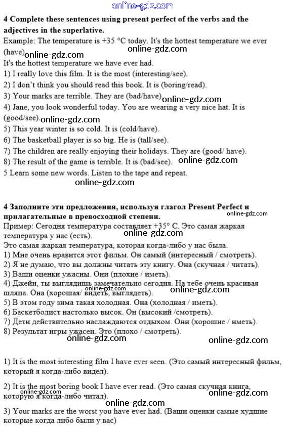 Готовые домашние задания по Английскому языку за 8 класс Учебник Афанасьева, Михеева Новый курс 2017 - Step 5 Unit 2. English - a Global Language 4