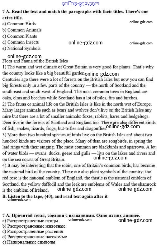 Готовые домашние задания по Английскому языку за 8 класс Учебник Афанасьева, Михеева Новый курс 2017 - Step 4 Unit 3. Living Things Around Us 7