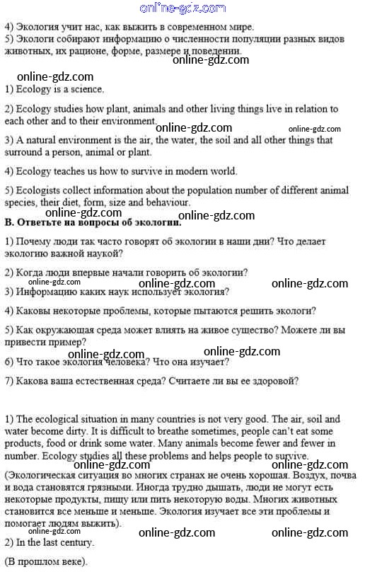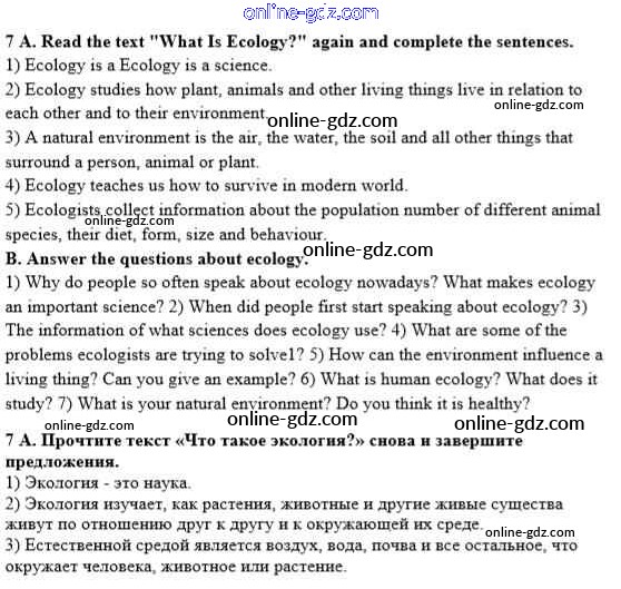 Готовые домашние задания по Английскому языку за 8 класс Учебник Афанасьева, Михеева Новый курс 2017 - Step 1 Unit 4. The ABC of Ecology 7