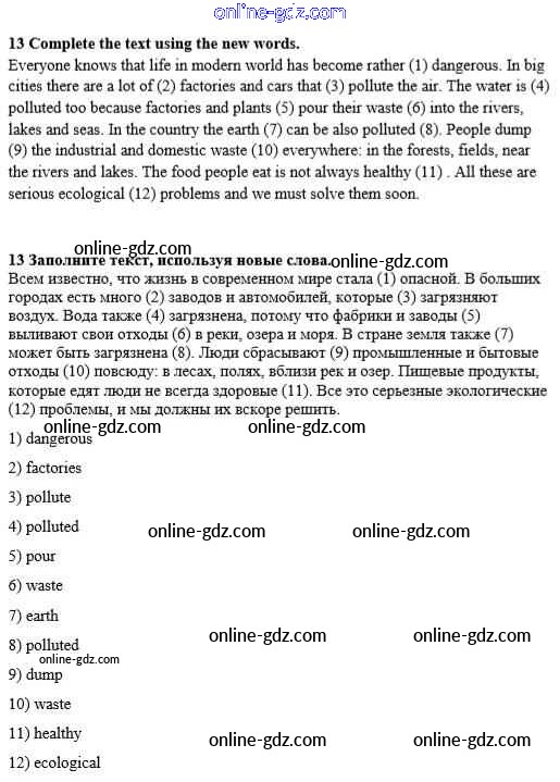 Готовые домашние задания по Английскому языку за 8 класс Учебник Афанасьева, Михеева Новый курс 2017 - Step 2 Unit 4. The ABC of Ecology 13