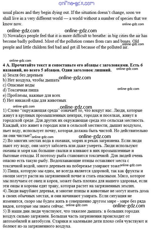 Готовые домашние задания по Английскому языку за 8 класс Учебник Афанасьева, Михеева Новый курс 2017 - Step 3 Unit 4. The ABC of Ecology 4
