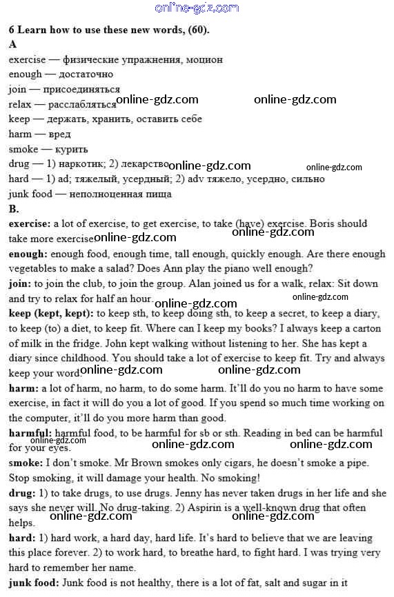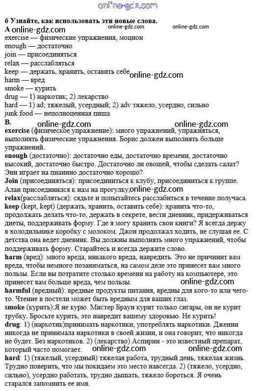 Готовые домашние задания по Английскому языку за 8 класс Учебник Афанасьева, Михеева Новый курс 2017 - Step 1 Unit 5. Keeping Fit 6
