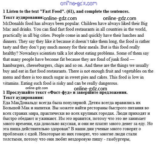 Готовые домашние задания по Английскому языку за 8 класс Учебник Афанасьева, Михеева Новый курс 2017 - Step 2 Unit 5. Keeping Fit 1